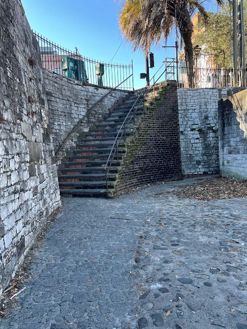 Our tour group was an eclectic mix. There were 6 young women there for a bachelorette party, 4 women from somewhere in the south there for a girls weekend, and two other couples who also both lived in adjoining states. We were the only “westerners” in the group. The grouped walked from small town square to small town square, Savannah has them set up in a grid, and we would stop at them and he would tell a story. There were two more stops at bars where we had a beverage.