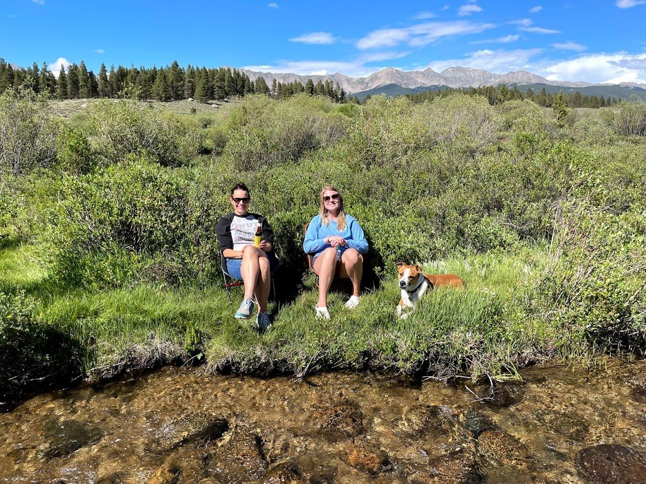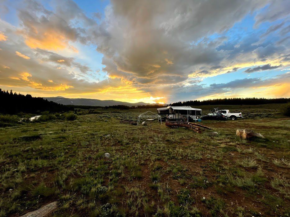 Forest service road 755 is VERY bumpy. The road is basically over a mountain moraine so it’s full of round rocks the average size of a volleyball. When we drove into here in 2017 on a trip all our eggs in the camper broke, just to give you some feel for how bumpy the road is. So we crept in with our camper and our favorite spot right next to Texas Creek was open. We pulled and set up the camper. Then I drove out to the main road to get cell service and to contact Col M and Smooch as to where we were.