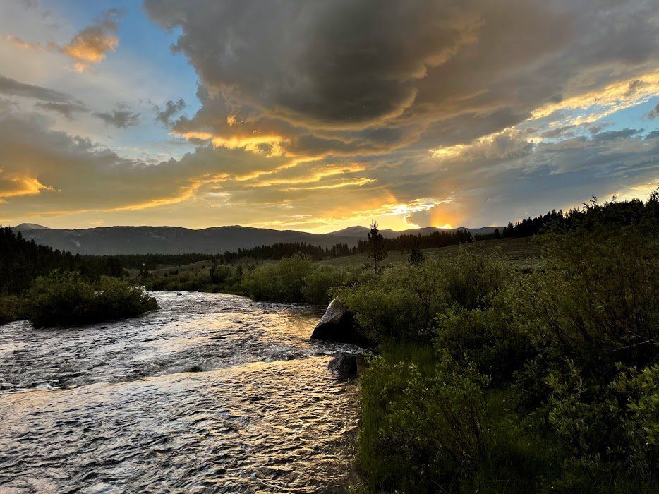 By 2 pm Smooch and HD were with us and the weekend could begin. Col M would be there about 10 pm with Lindsey and Carter. The Taylor valley has had a decent amount of rain because unlike the past two years it was still incredibly green. Texas Creek was running well and had nice little pockets to fish. Smooch and I got out our fly rods as MLW and HD sat in chairs on the stream and caught up. I caught a nice little brown trout and after about an hour we returned to make dinner and play games.