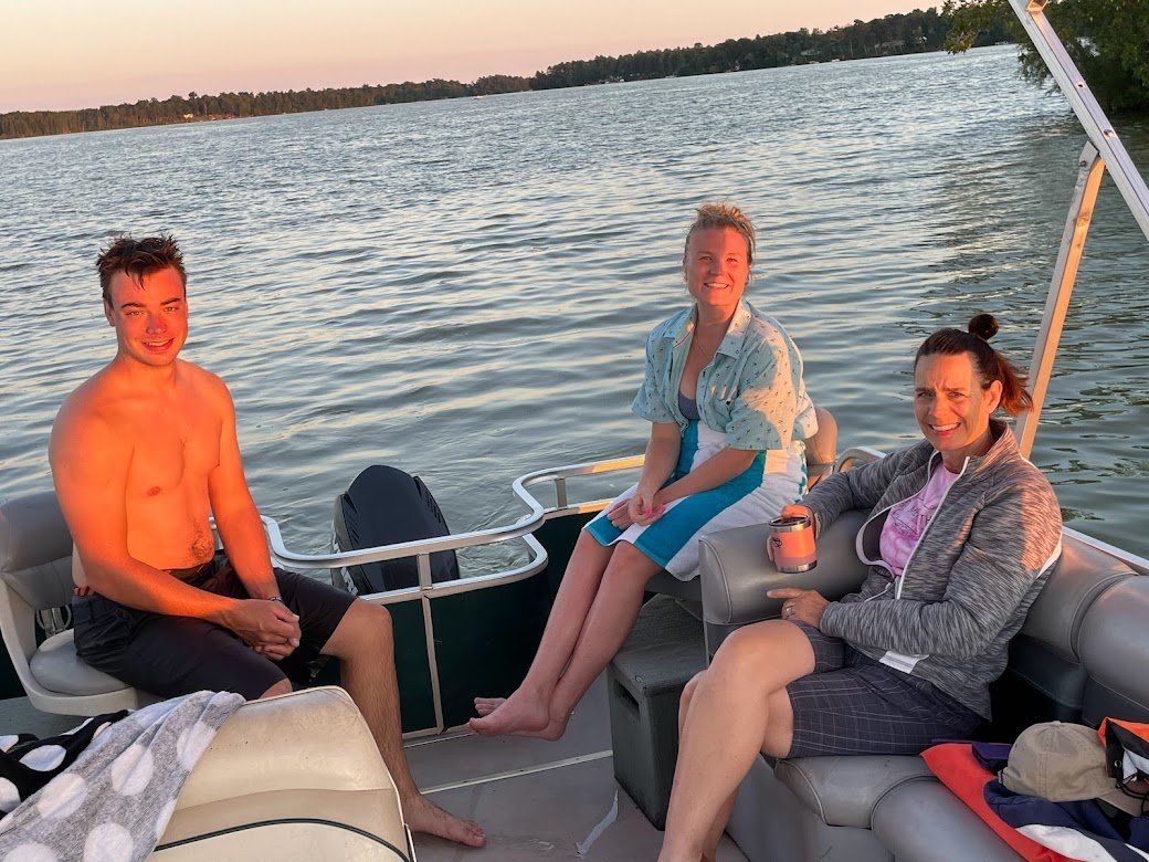 After the “kids” left, MLW and I cruised the lake and looked at cabins and just enjoyed the beautiful day. We anchored and jumped into some floaties for a while and floated around the pontoon, then it was time to clean up. We cleaned up, put two of the cruiser bikes from the cabin on the pontoon and went to return the pontoon to the marina. It wasn’t due in for another couple of hours and as I pulled up to the marina, MLW asked how much gas we had left. I said about 1/8th of a tank. She said, “take me to Gilligan’s for a beer and then we’ll bring the boat back”. MLW is always full of good ideas! About an hour later we docked the boat and rode the bikes back to the cabin.